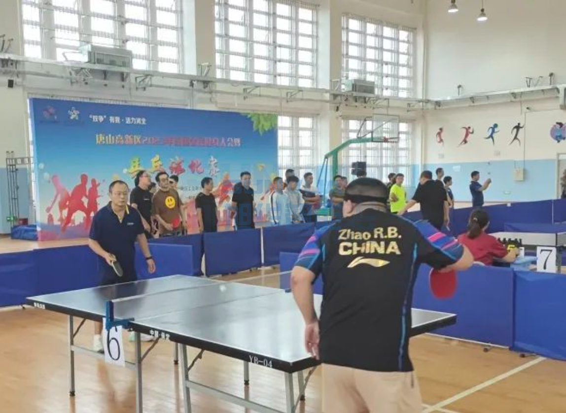 8月12日,唐山高新区2023年首届全民健身大会暨乒乓球比赛在高新中学开赛。我公司持续响应区工会号召,呼吁员工报名参赛,并引导员工加强体育锻炼,增强体魄,提升运动意识。最终王志强、张海东、闫安、尹天奇四人代表公司参赛。